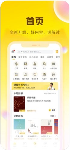 樊登读书是院优秀的图书应用软件,为樊登读书爱好者提供丰富的有声阅读资源。 樊登读书应用程序是爱书人的天堂,每周分享线上课程,可以和其他书友分享书籍、书评,互相讨论文学作品等。