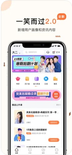 四六级,考研,英语学习等丰富课程,覆盖大学生学习成长全过程;
