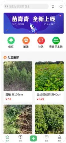 苗青青是一家专业从事园林苗木批发交易的采购报价应用程序,让供应商和采购商准确一致,随时直接谈心,苗青青支持安全顺畅的网上苗木交易,切实有效地实现苗木买卖放心,真正做到每棵苗都有价值。