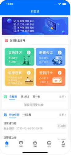 销管通app自动统计日程工作数据,方便用户了解日程完成情况。