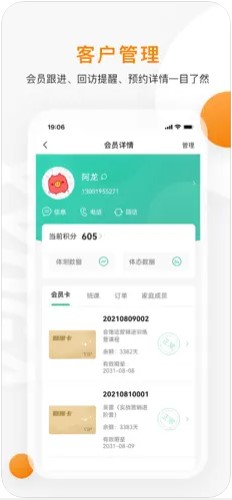 会员管理:会员及访客信息管理;体验卡、会员卡管理。