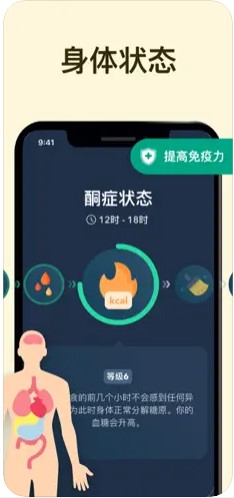 APP将随着禁食时间而提示您身体状况各阶段将产生的变化,如:血糖水平、糖原储备、代谢状态等。