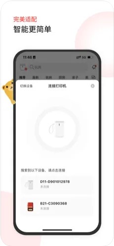 目前臣小印app支持精臣D11、D110系列、拾光机B21系列打印机,JcTag防丢器。