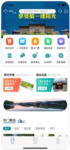 君到苏州app里有着丰富的文旅产品资源库,我们在原有文旅服务的基础上添加了新的功能亮点:公共服务、电影购票、剧场演出、双码一检、图游苏州,为用户带来新的体验提升,更好的服务广大苏州市民和游客。