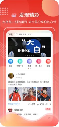 随手拍视频,记录身边新鲜事,快速上传,第一时间与他人分享互动,获得其他用户的点赞、关注,并可一键分享至微博微信等社交工具。
