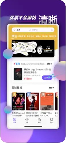 票星球应用程序是音乐会音乐节的门票平台,票星球应用程序ios是专业现场娱乐活动的官方门票平台。票星球应用程序内的票源类型涵盖流行音乐音乐会、各类剧场艺术、赛事、现场活动,贴近年轻人的设计和使用习惯,让所有现场成为年轻人的盛会。