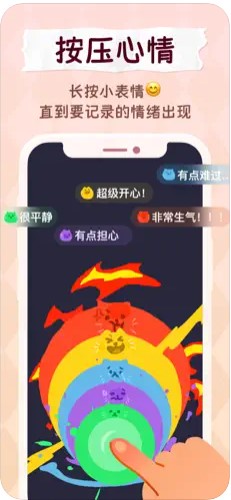 情绪指压(MoodPress)是一个记录心情的应用,用户可以根据自己当前的感情决定指压的力量和时间(按压力越大或时间越长表示愤怒),在适当的时候释放,可以确定和记录心情。