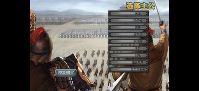 本游戏是以中国古代残唐五代为背景的模拟游戏,共有残唐五代史中记载的700多名武将,每个武将作者都收集了人物列传。除了游戏功能以外,玩家可以通过人物列传了解残唐、五代十国时期的历史故事,人物背景。扮演朱温、李克用、阿保机等历史人物,重现残唐五代史上的光辉时刻。