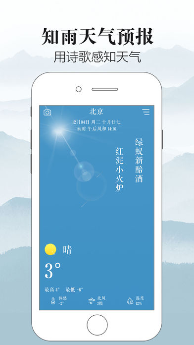 知雨app是一款高颜值的实用天气应用,采用国内外多家气象机构数据,天气预报信息准确全面,提供下雪、下雨、闪电、多云、沙尘等实时动画多维度展示天气气象,提供数千首古诗词,结合节日,天气,随机播放。