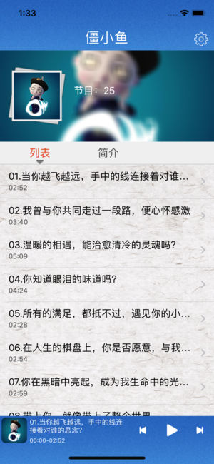 僵小鱼app下载是一款独特的电台软件,致力于为每一位听众提供各种各样精彩有趣的故事,在独自一人的时候,小鱼为你轻声慢语地讲述众多动听的故事,为你写一首小诗,伴你入睡!