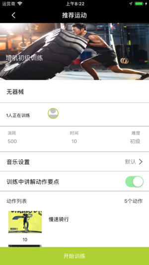 手机视频辅助教练进行健身指导,通过自定义训练课程、推荐训练课程。