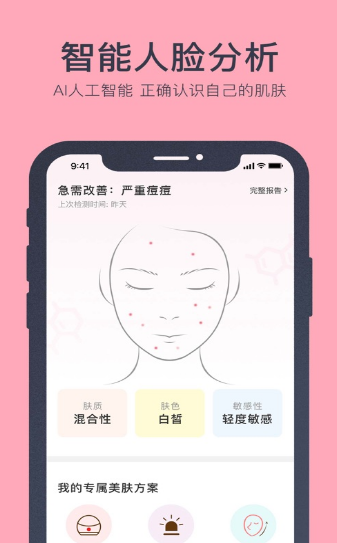 1、通过拍照的方式即可快速的进行皮肤问题的检测与分析;