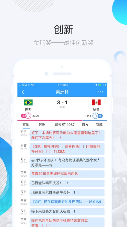 3、与球迷们一同的观看到精彩的体育赛事直播进行比赛的互动讨论;