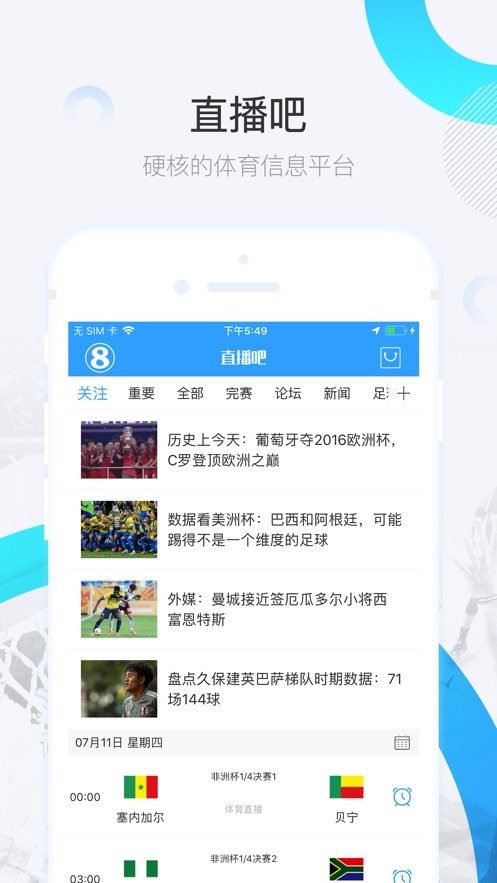 直播吧appios是一款体育的资讯服务应用平台。为您带去精彩的体育赛事内容的直播分享。与万千的球迷朋友们可以一同的进行精彩的体育赛事的观看哦,你所喜爱的篮球足球都可以轻松的进行观看。
