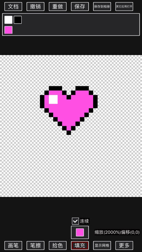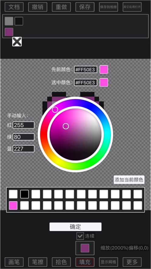 界面简洁,提供画笔,填充,笔擦,拾色等基本功能,支持撤销和重做;