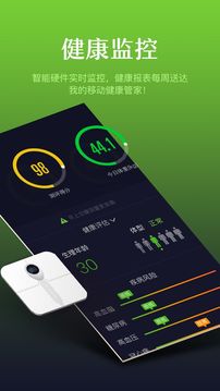 3、连接智能健康秤,全面检测19项身体数据(身体年龄、体脂、肌肉、BMI等等),自动生成身体数据报表,日报、周报详细比较,身体变化轻松掌握;