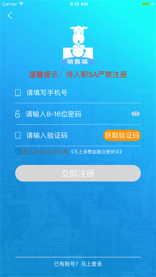 马上销售苹果手机版是马上金融旗下的一款销售类手机APP,能为销售人员提供便捷的办单、订单管理以及业务学习等功能,有效提高用户的销售效率。并且,马上销售软件还会根据用户的个人信息以及销售项目,自动锁定目标客户人群,让你省去寻找客户的麻烦。另外,软件涉及全国各大城市,其中就包括美容、手机数码、家电、家具、旅游、教育等多个行业约7万家商户,为其门店的销售人员提供在线下为用户分期购买商品时,做单销售相关功能,非企业内部应用,如果有从事销售行业的用户不妨来下载试试吧!