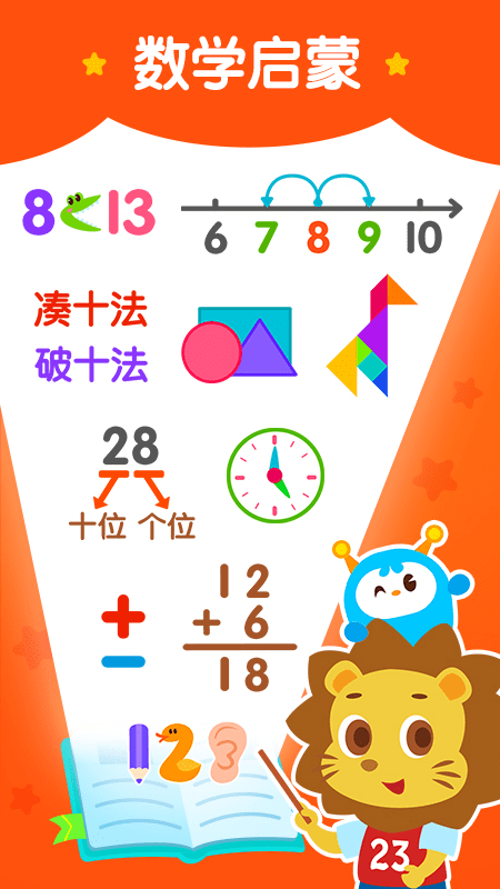 涵盖启蒙数学知识要点。根据孩子学习掌握情况和练习进度,每日自动生成学习和练习内容,确保孩子循序渐进地掌握数学知识。