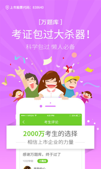 万题库内含完整的、免费的、成体系的考试视频课程、讲义,支持离线下载,可随时观看。2265节约时间和脑容量,抛弃冗长的课本,只把最有用、最有价值的备考知识装进脑袋里!