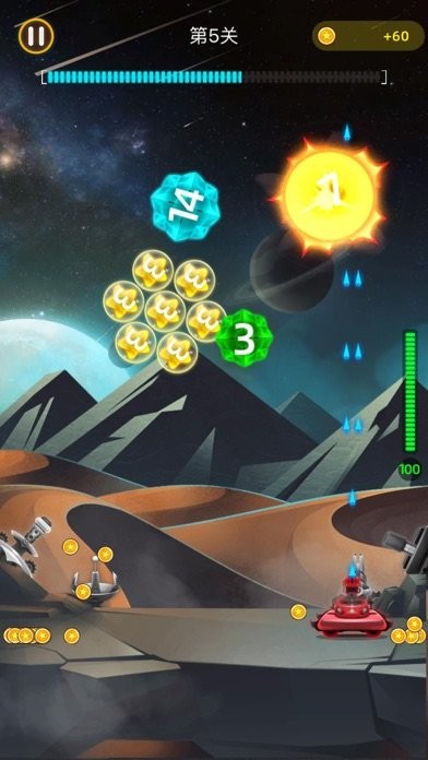 2、升级飞船探索太阳系,无规则运动作战,射击作战自由炮火;