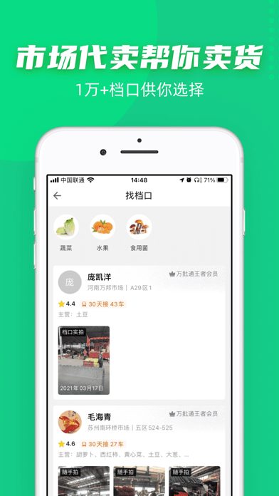 一亩田豆牛app是专注做农产品市场代卖代采,建设农副产品在线批发交易平台。解决产地销往市场价格不透明、发货经验不足、好货贱卖,采购成本高、起早贪黑还买不到低价好货的问题,真正让买货卖货变得更轻松!
