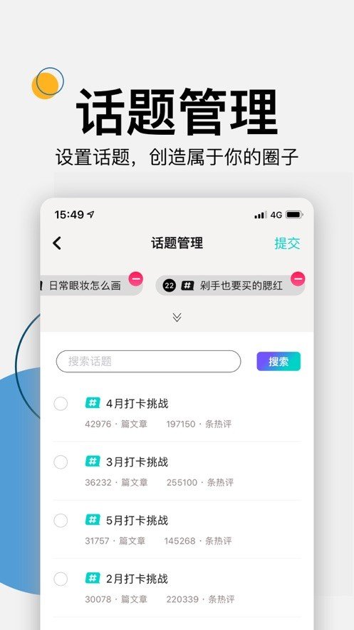 3、在手机上面就可以对各种话题进行便捷的管理,还可以设置话题,打造一个属于自己的圈子;