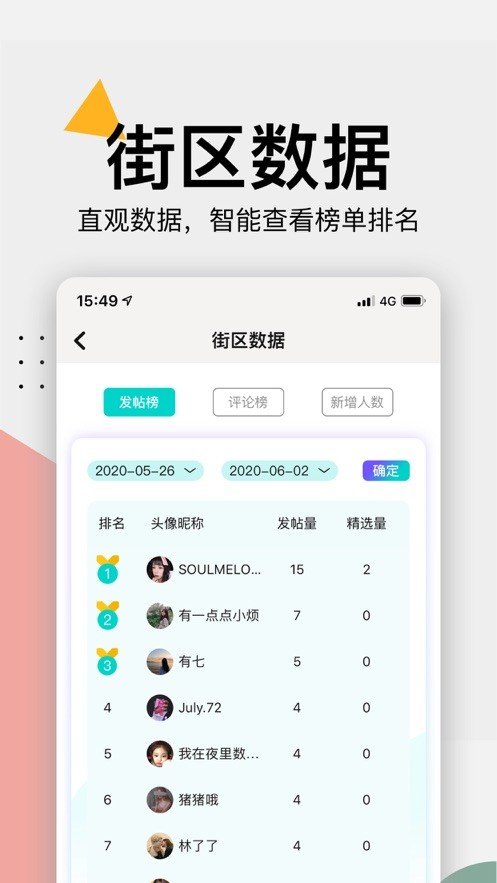 4、可以直观的通过这个软件了解到街区的数据,还能够智能查看榜单的排名情况。