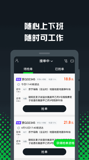 1、GoFun众包在线查看抢单要求,完成资格认证,就可以抢单了;