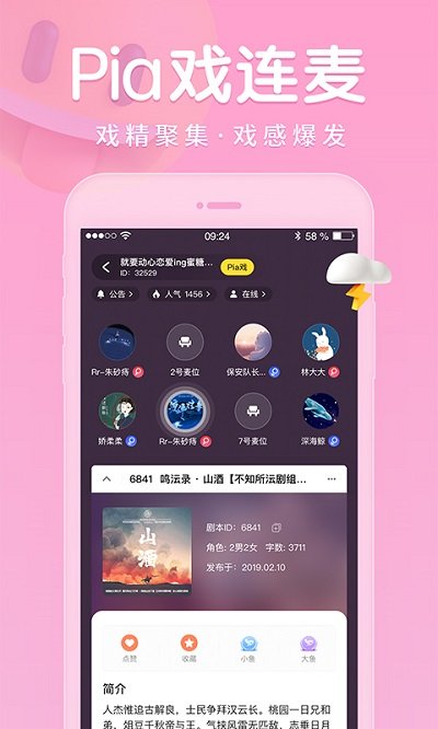 这是一个很好用的多人语音配音秀软件,平台上提供众多精品剧情歌,或者剧本,用户可以在软件上找到心仪的小伙伴一起用声音表演。用声线展示自己,用声音与观众互动。简单易用的功能属性让众多喜爱配音的用户有了发挥才华的空间,更多的人可以通过这个有趣好玩的平台秀出自己的专属快乐。