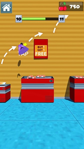 一款十分具有趣味性的冒险闯关休闲益智小游戏,游戏具有十分可爱的画风,超级多的厂商用心打造的趣味关卡,等玩家来进行挑战,手指对屏幕进行按压就可以开始游戏,玩家需要灵活的操控果冻不断反转来进行跳跃,在不同的物体上进行冒险,帮助果冻跳上最后一个平台就可以完成任务了。