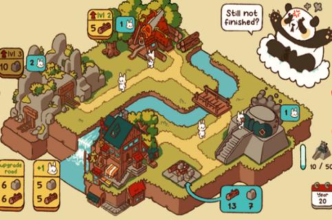生气熊猫和建造兔游戏下载一款采用了可爱卡通画风作为亮点的模拟游戏。凶凶的熊猫正在监督兔兔为它打造一个专属的花园,游戏的玩法非常简单,只需要通过简单的点击就可以完成,让可爱的小兔子帮你打造一个专属于你的世界吧,有兴趣就来试试吧。