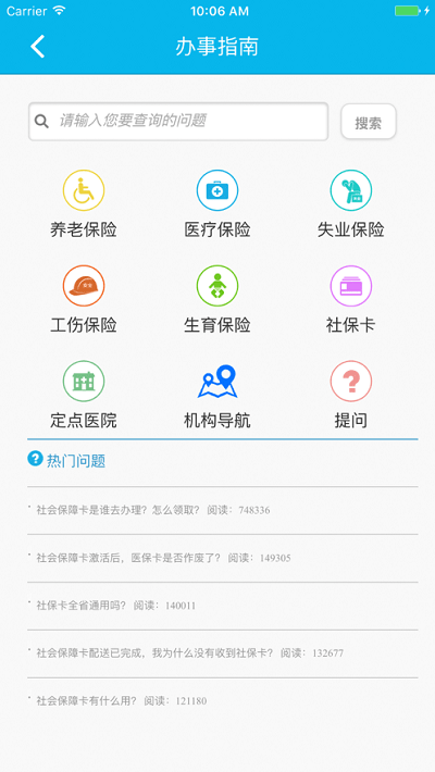 为用户提供社会保障卡应用、查询、缴费和办事指南等服务。用户可方便查询从社会保障卡的数据采集、制卡到领卡确认的全流程进展,快速查询个人参保情况、准确获取各险种的每月单位缴费、个人缴费到账情况,查询个人医疗、养老账户信息,五险待遇享受情况。另外,省厅还联合银联、各合作银行推出了时尚便捷的网上缴费业务,远在他乡务工,就能通过“湖南智慧人社客户端”为自己及远在家乡留守的父母、子女缴纳城乡居民养老保险和医疗保险的费用。