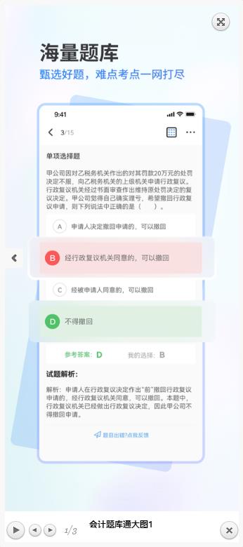 1、会计题库通APP是一款面向个人及机构提供专业的职业教育培训的便捷学习工具;