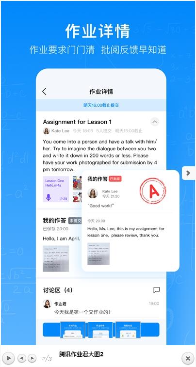 学生可提交图片等作为作业内容,支持老师在线打分和涂抹批阅