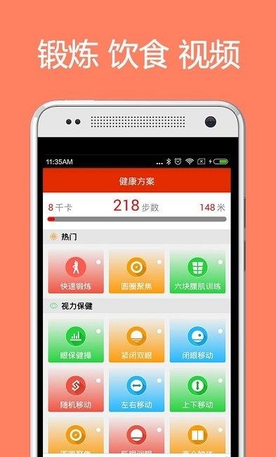 ▼七分钟锻炼、六块腹肌训练、臀部训练、腿部训练、眼保健操、减肥操、降压操等各种游戏化的交互式训练方案,统计管理每天的运动量和运动类型。