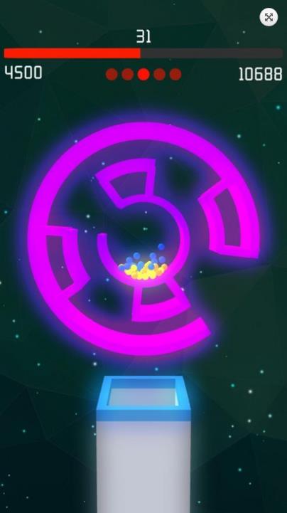 3、轻松手指滑动屏幕,去挑战诸多难题,不断积累经验,去向外推开小球。