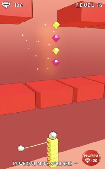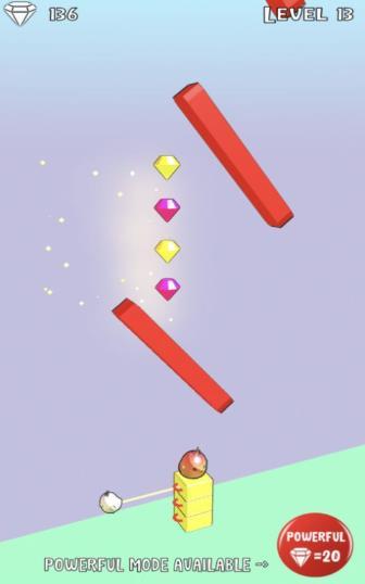 2、不断堆叠创造更多方块通往高处,各个地方的障碍物需要你来灵活的躲避开。