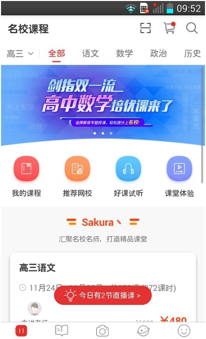课后网空中课堂是一款在线学习平台,名师直播教学,家长、老师、学生三方都可以参与进来,实时的音频互动,让你高效学习,还能及时解决你学习中遇到的问题,感兴趣的朋友赶快来下载吧!