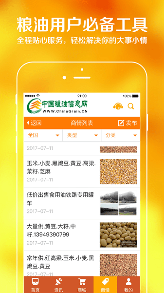 粮食供应、求购、招商、合作、代理、机械设备等分类信息的查询和发布。