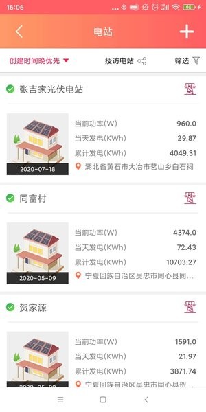 2、信息筛选,用户在查询各个电站的时候,还能针对性筛选查询。