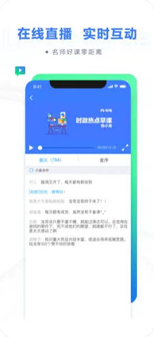 2. 我的直播课:名师指导,直播听课耗流量少,高品质音质给您最佳听课体验;错过直播也不怕,回放列表无限次播放。