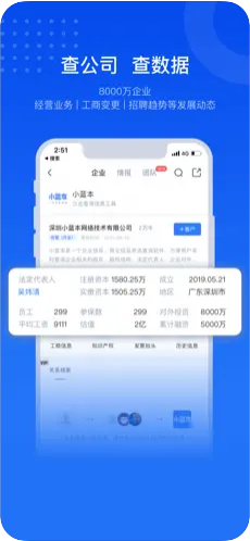 小蓝本,免费查公司,搜人脉,找商机!人脉圈重磅上线,共享老朋友真实线下人脉,帮你轻松找人找钱找合作。实时追踪企业经营趋势和老板发展态势情报,提供涵盖企业规模、市场估值、产品用户活跃指数、人才发展指数、销售指数、商业风险、老板商业人脉、经营业务变化等信息。小蓝本用一手商业情报,助力每一个中小企业老板把握商机,走向成功!
