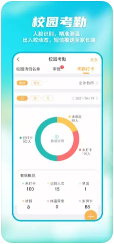 3.校园考勤:人脸识别,精准测温;出入校动态,短信推送至家长端