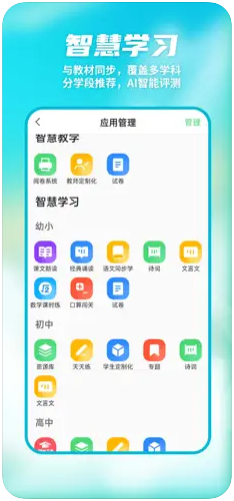 1.智慧学习:与教材同步,覆盖多学科;分学段推荐,AI智能评测