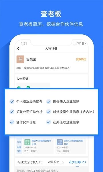 如找对象相亲时提前了解对方任职登记信息、投资信息、失信信息等各类信用信息,可提前避免日后产生的各种问题。