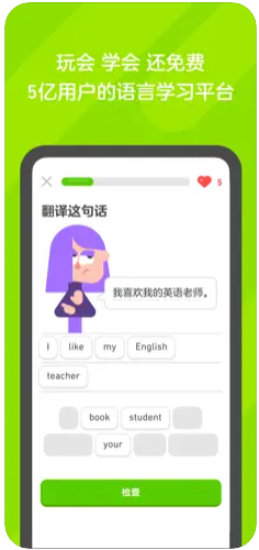 多邻国app最新版是小编自用的一个免费学英语app,它最大的优势就是非常适合零基础的学生来进行学习,除了英语,还内置了日语、汉语、法语等世界各国的语言可以免费学习!