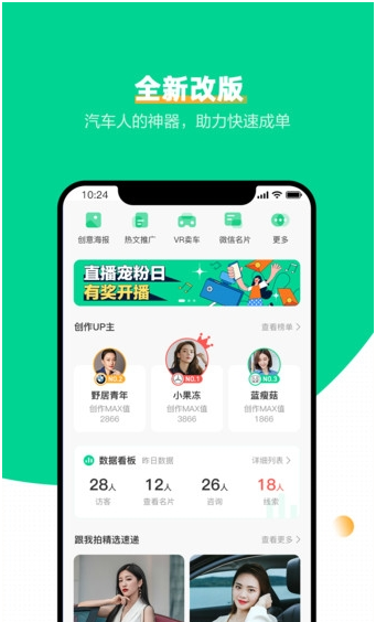 可以创建汽车简历,让客户通过简历了解汽车,为意向车型跟你联系;