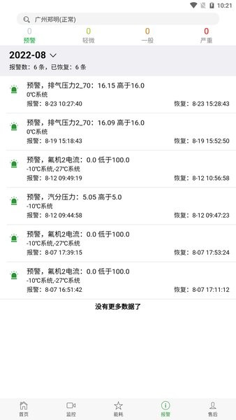 报警服务:设备故障时自动报警。
