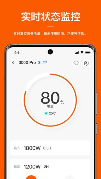实时监测设备状态,如电量、剩余使用时间、温度、输入输出功率等。