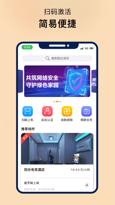 4.可以到网吧、网吧等场所进行快速实名认证,同时可以预订座位。